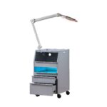 עגלת שירות מפוארת לטיפולי אסתטיקה עם תא לחיטוי בצבע אפור ומקום למנורה