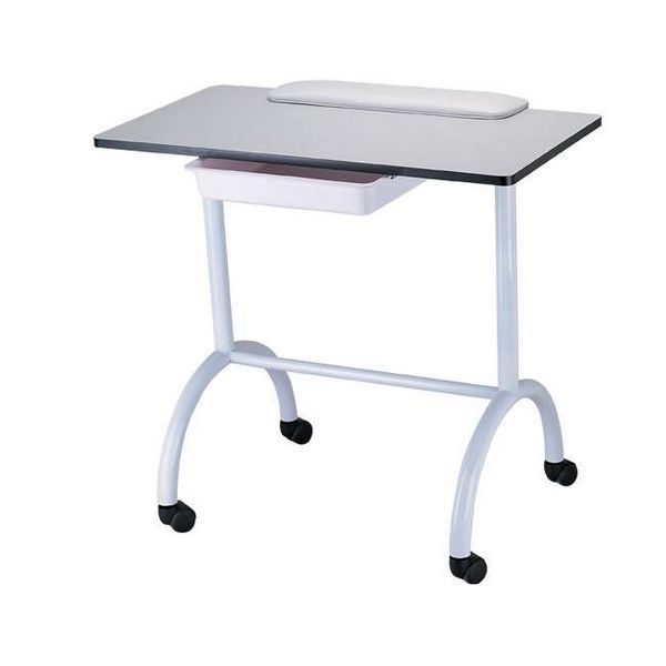 שולחן למניקור כולל כרית לתמיכה נוחה של יד הלקוחה ומגירה לאיחסון.